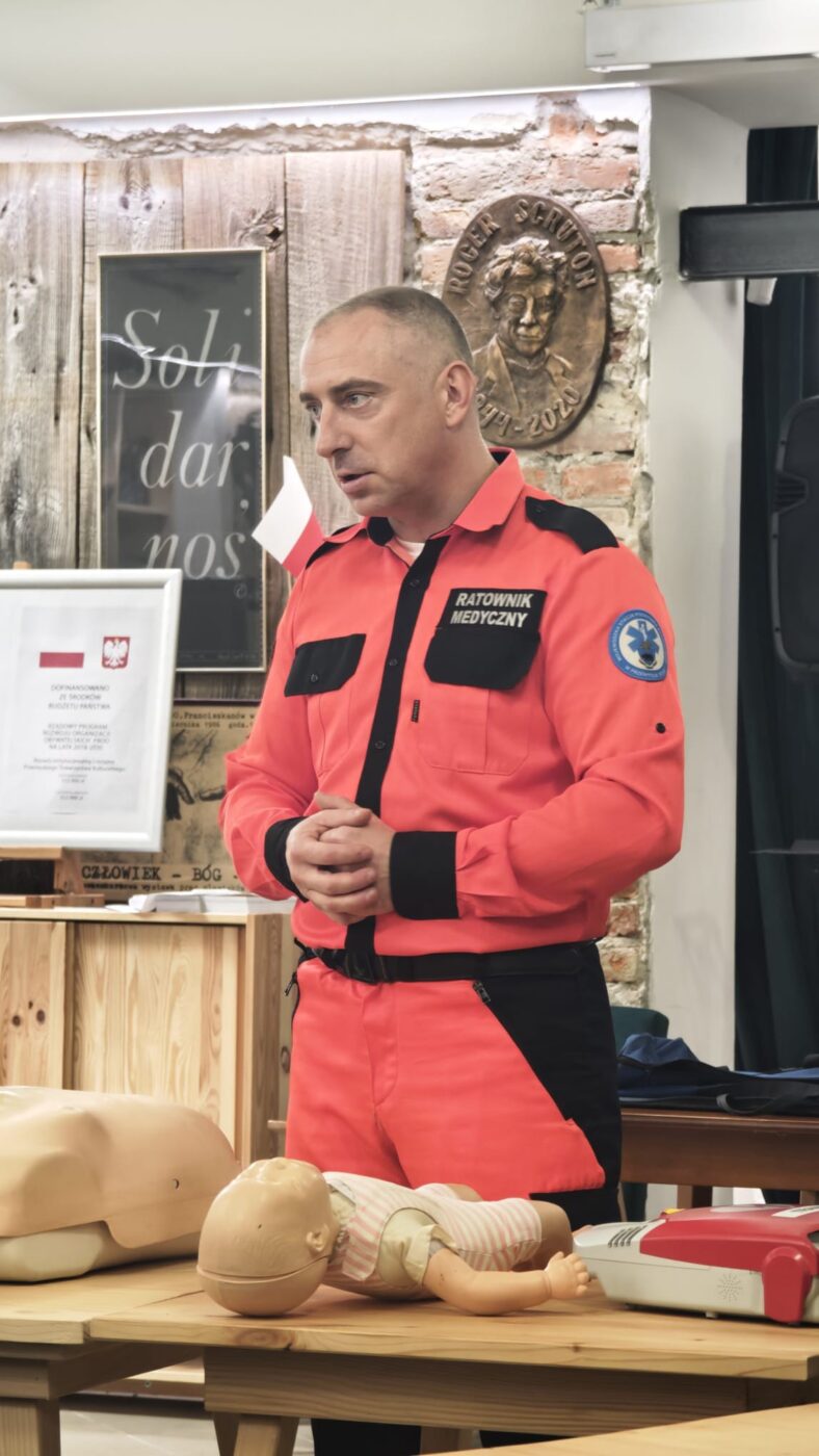 Tym razem uczestnicy wzięli udział w szkoleniu „Jak ratować życie – pierwsza pomoc przedmedyczna”. Podczas zajęć poznali najważniejsze zasady reagowania w sytuacjach zagrożenia zdrowia i życia oraz mieli możliwość przećwiczyć kluczowe techniki ratownicze. Dowiedzieli się także, w jakich sytuacjach należy wezwać pogotowie ratunkowe i jak to zrobić, aby nie tracić cennego czasu, który w sytuacjach zagrożenia życia ma fundamentalne znaczenie.