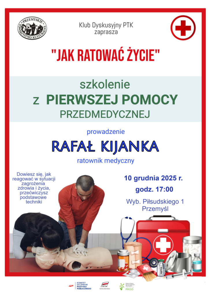 📍 Klub Dyskusyjny Przemyskiego Towarzystwa Kulturalnego zaprasza na szkolenie z PIERWSZEJ POMOCY przedmedycznej 🚑🩺